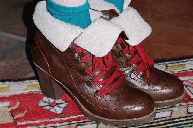 These are also new. Since the pair I wanted from piperlime had sold out I decided to go the cheaper route to obtain what I call a 'heeled hiker' boot. I am just not sure about my Dennison to add teal socks. I really wanted a chunky sock look but didn't have any pair of socks that worked with that!I had truly adored the polka dot cream tights from JCrew last year. So this year I got these as a gift from sister from Romwe. They are not exactly polka dots but pretty close.