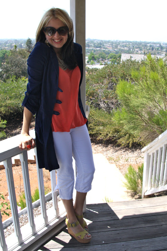 This is a top I got on the sale rack from Anthropologie. The navy stitching worked perfectly with the navy jacket...